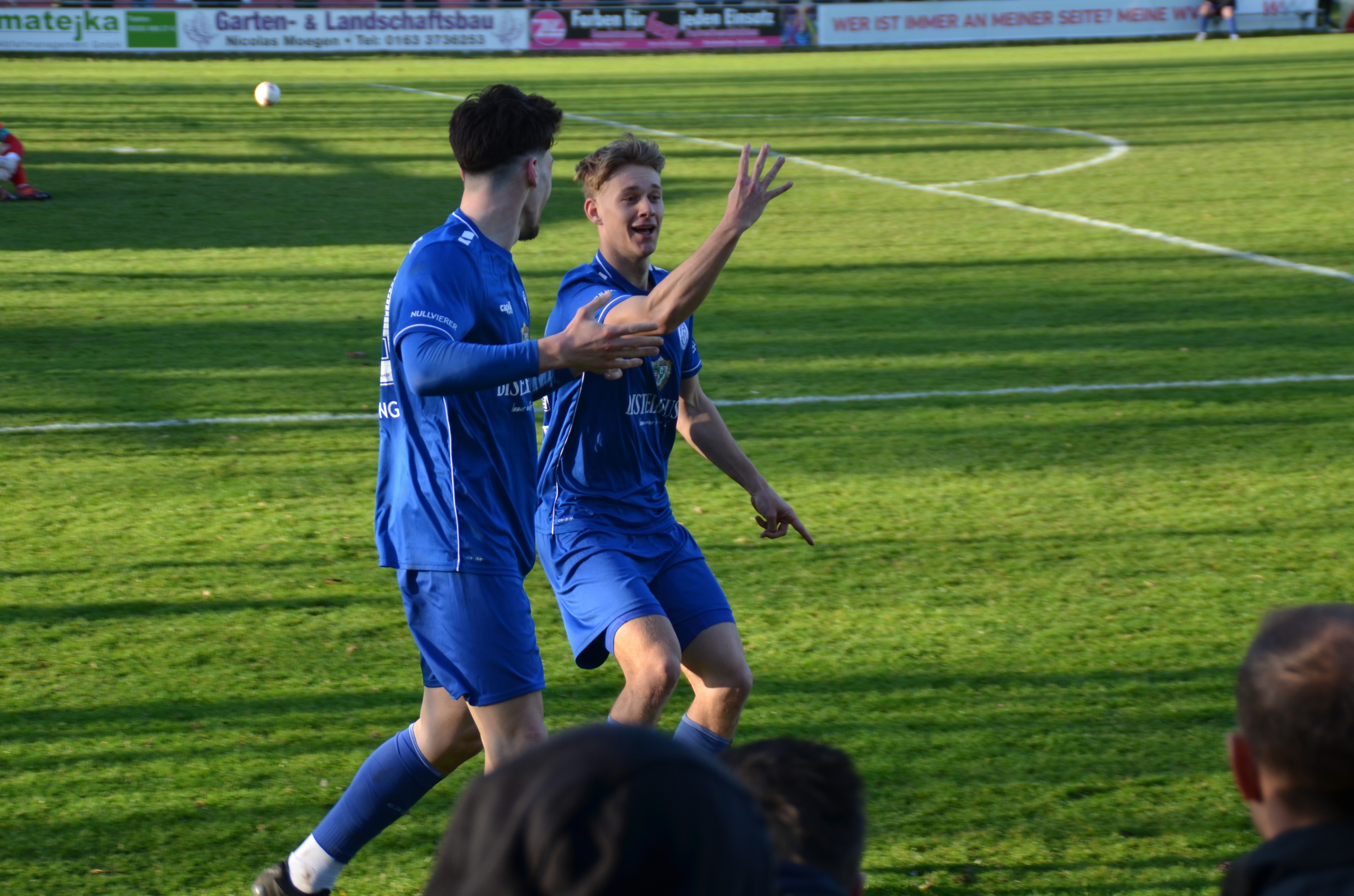 Da kam dann sogar der heute wenig beschäftigte André Koob aus dem Tor und jubelte über das 4. Tor des Winterneuzugangs aus Aubstadt zum ungeahnt hohen Sieg seiner Mannschaft.
