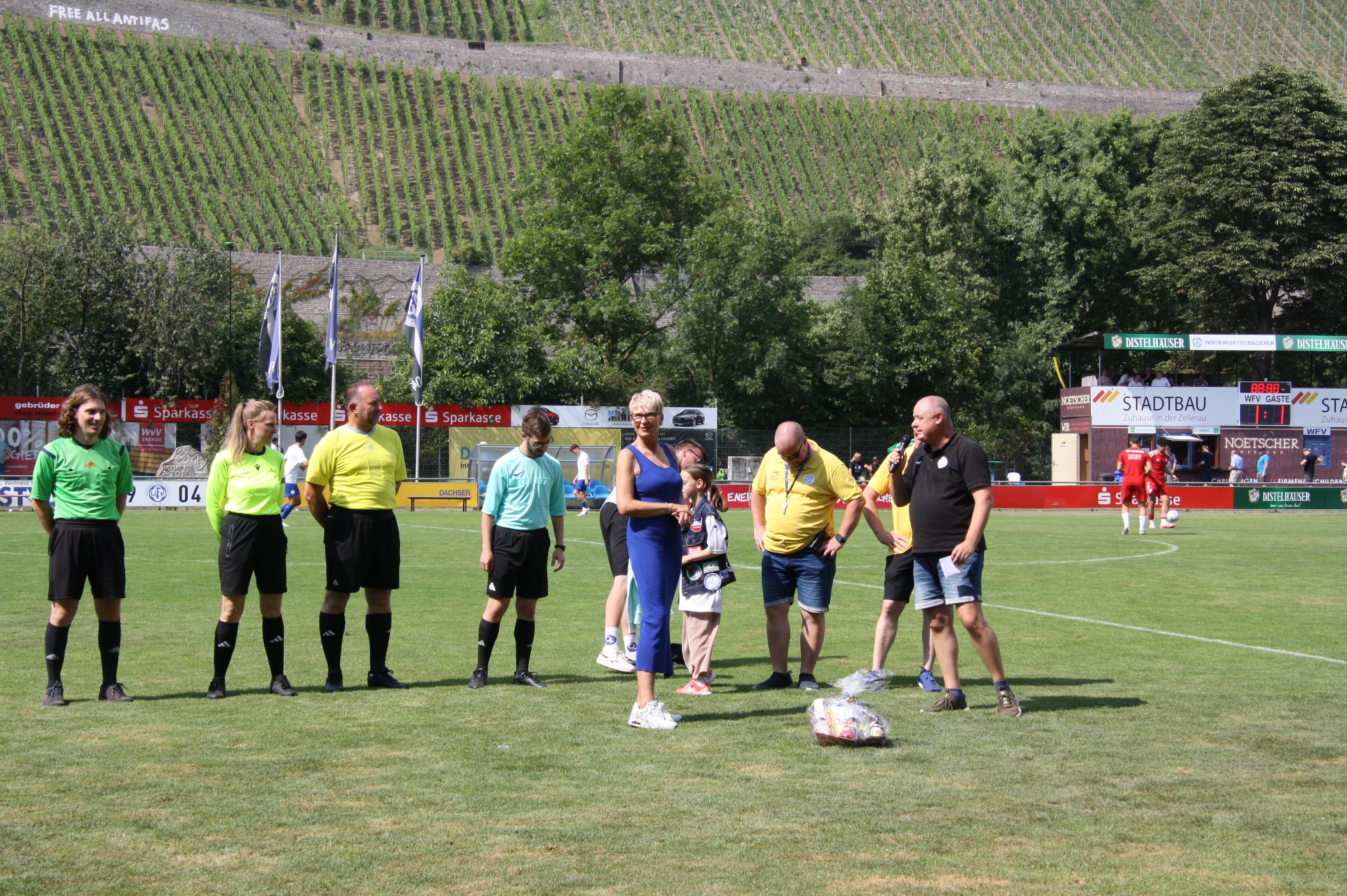 Beim ersten Bayernliga-Heimspiel am Samstag, den 20. Juli 2024 wurden die 7 neuen Schiedsrichter, die ab sofort für den FV 04 pfeifen, in der Halbzeitpause vorgestellt. Der FV 04 Würzburg freut sich, sie in der WFV Familie begrüßen zu dürfen.