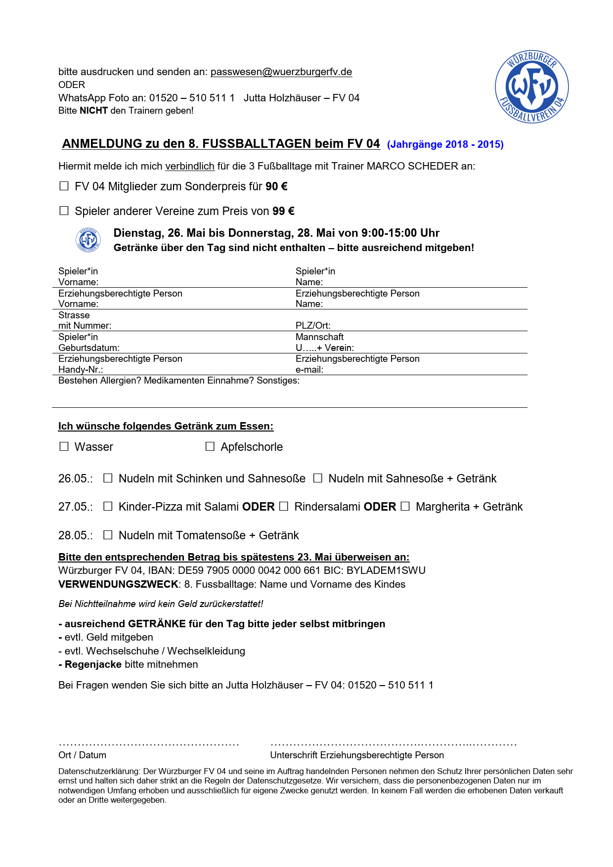 Zurück 8. Fußballtage beim FV 04 06. März 2026 Kommt in den Pfingstferien zu den 8. Fußballtagen beim FV 04!Hier gehts direkt zum Anmeldeformular … https://assets.coco-online.de/99641772789533-Qr1sNkBp/anmeldung-wfv-8.pngDie Jugendleitung