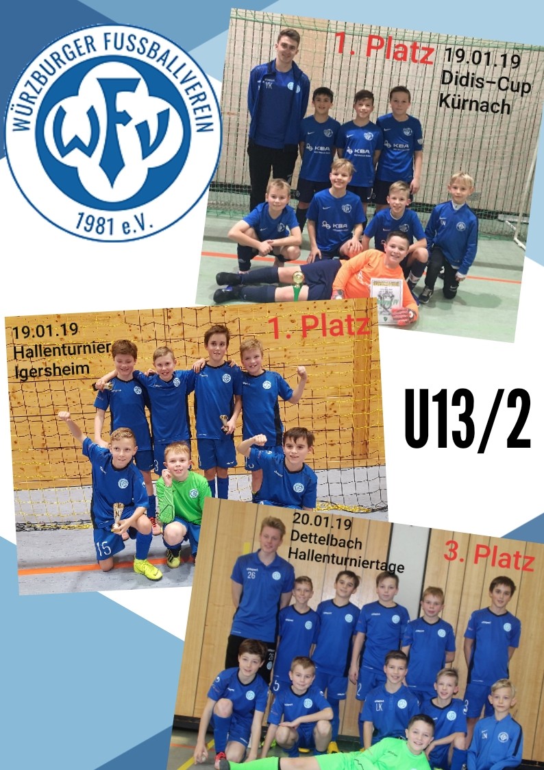 Am darauffolgenden Tag trat ein Teil des Teams bei den Hallenturniertagen im Dettelbach an. Hier konnte die U 13/2 in der Gruppenphase alle fünf Spiele gewinnen und zog problemlos als Gruppenerster ins Viertelfinale ein. Dort besiegten sie Dettelbach & Ortsteile 2 mühelos und standen nun im Halbfinale dem 1. FC Schweinfurt 05 gegenüber. In diesem Spiel bestrafte der Favorit und späterer Turniersieger kleine individuelle Fehler sofort und man musste sich mit 0:3 geschlagen geben.