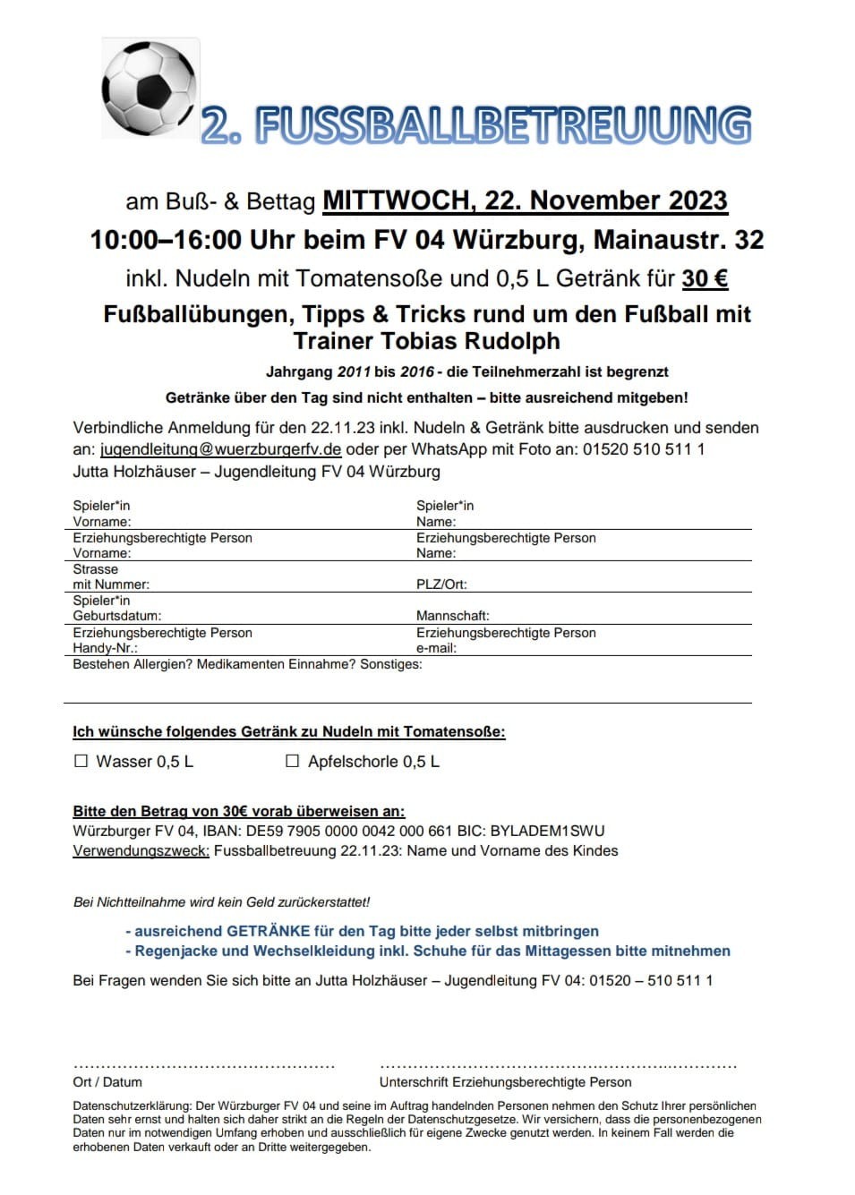 Fußballbetreueung am Buß- und Betttag