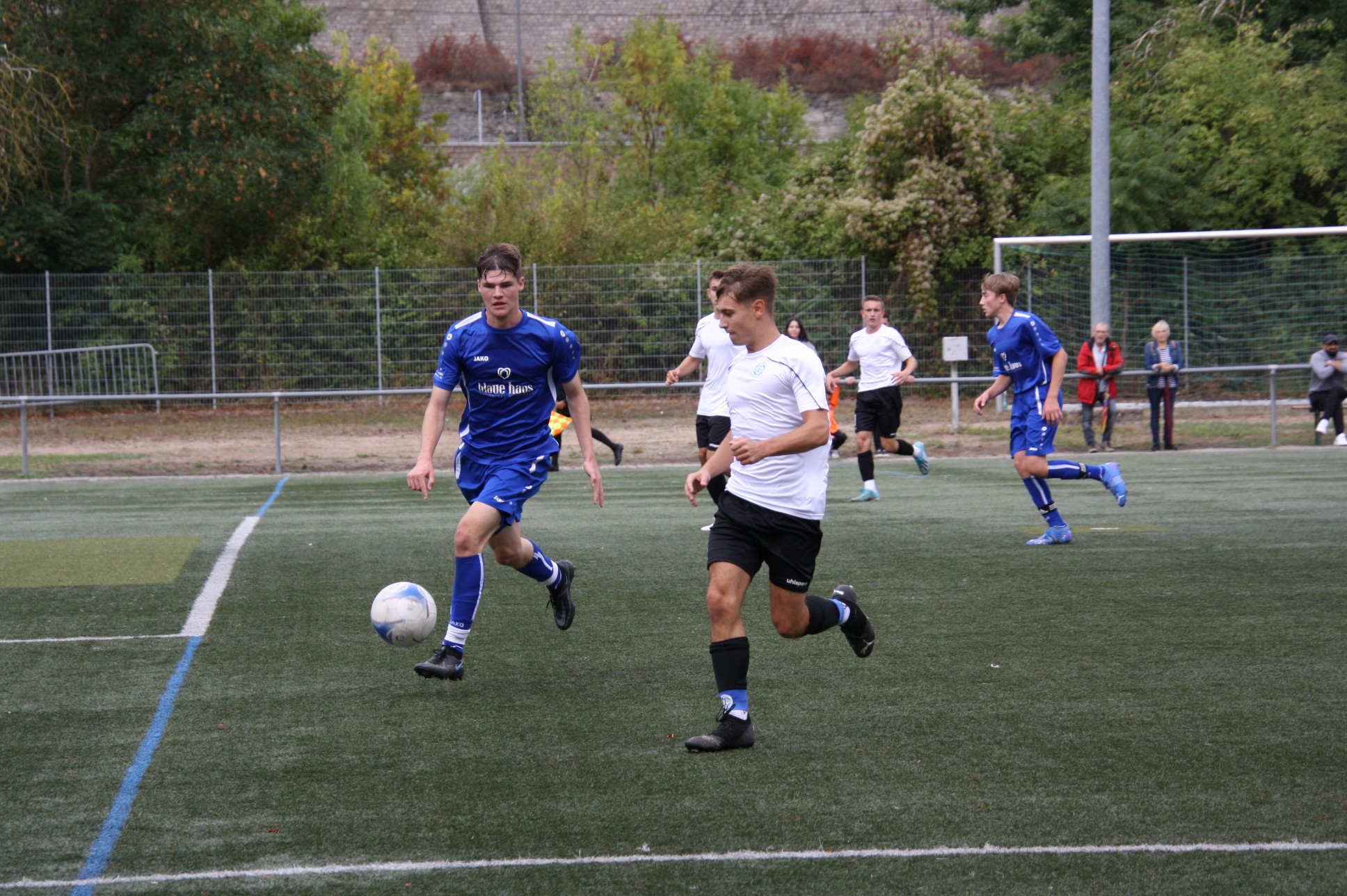 12. September 2022Nach zwei Niederlagen zum Start in die Saison, empfingen die Blauen den SV Raigering auf dem heimischen Kunstrasen. Die Gäste kamen gut in die Partie und hatten die ersten Möglichkeiten, doch Kapitän Jakob Lannig sorgte für die etwas glückliche Führung der Heimelf nach 21. Minuten. Eiskalt bestrafte er einen Abwehrschnitzer der Gäste und verhalf so der Heimelf zu mehr Sicherheit. Dennoch hatten die spielfreudigen Gäste weitere Chancen bis zur Halbzeit, die der glänzend aufgelegte Patrick Bier aber alle parierte. In der zweiten Halbzeit bekamen die Blauen dann mehr Stabilität in die eigene Defensive und konnten immer wieder gute Konter setzen. Einen davon nutzte der spielfreudige Fabio Weisenseel in der 69. Minute und machte so mit dem 2:0 quasi den Deckel drauf. Denn auch der Schlussoffensive der Gäste hielt die Defensive um Keeper Patrick Bier stand und so behielten die Blauen die ersten drei Punkte in der Landesligasaison an der Mainaustraße.