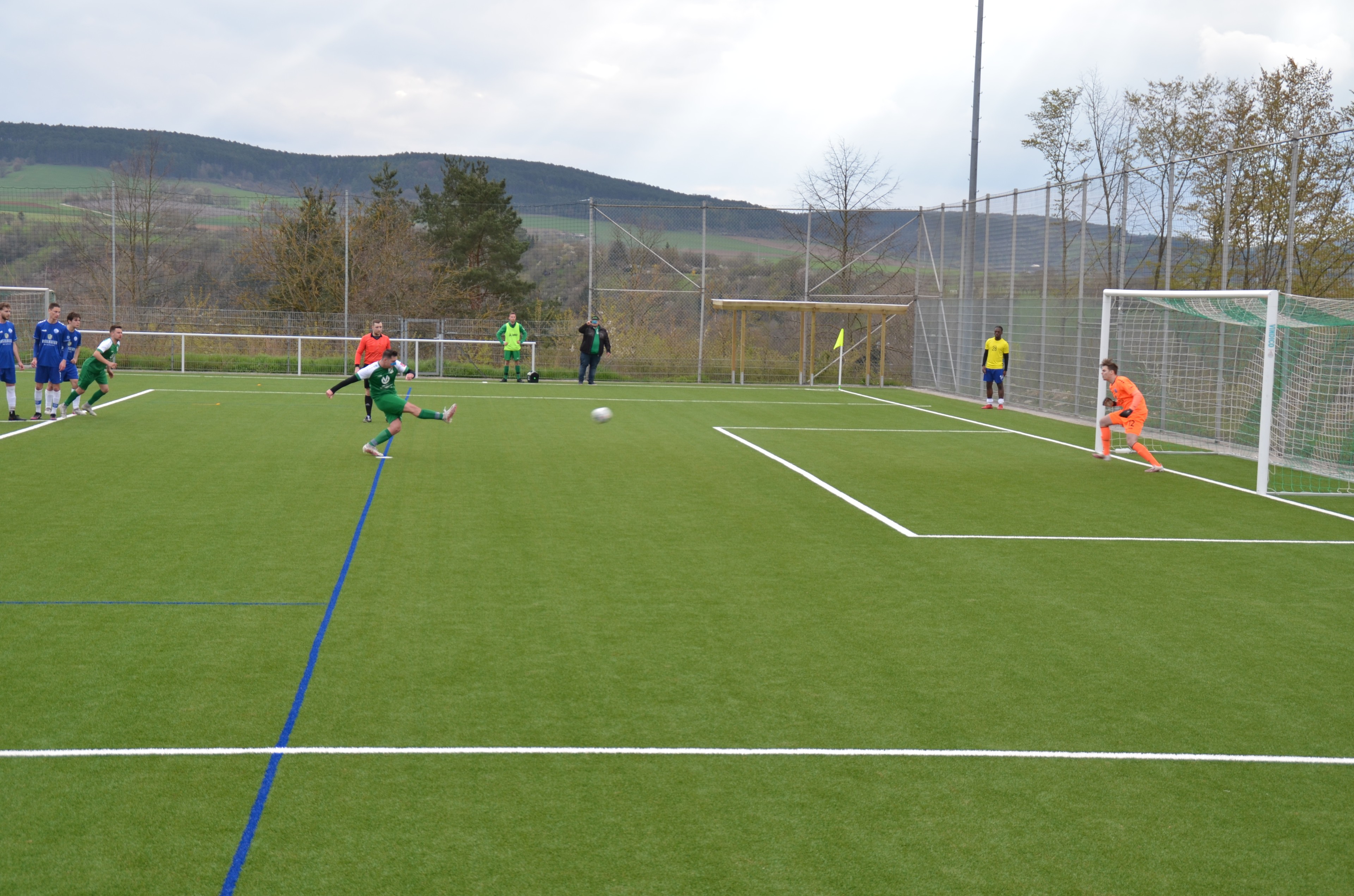 Nach dem Sieg im Spitzenspiel zu Hause gegen Holzkirchhausen/Neubrunn reiste die Bauer Elf am vergangenen Samstag mit neun Punkten Vorsprung auf die Konkurrenz nach Thüngersheim. Auf dem neuen Kunstrasen der Heimelf taten sich die Blauen von Beginn an schwer ins Spiel zu kommen.Das kleine Spielfeld spielte den robust auftretenden Thüngersheimern in die Karten. Immer wieder schafften es die Grünen den Spielaufbau der Zellerauer zu stören. So entwickelte sich eine einseitige Partie, welcher die 04´er nie ihren Stempel aufdrücken konnten. Vor dem gegnerischen Gehäuse tauchten die Jungs aus der Mainaustraße nur selten auf. Stattdessen war es ein ums andere Mal Julien Fersch, der die Null für die Blauen festhielt.Doch sieben Minuten vor Schluss konnte auch er das hochverdiente 1-0 für Thüngersheim nicht verhindern. Nach einem Foul von Adjagey zeigte der Schiedsrichter auf den Punkt. Den folgenden Elfmeter verwandelten die Grünen sicher. Auch die Bemühungen alles nach Vorne zu werfen brachten nichts mehr ein, sodass es beim 1-0 für die Heimelf blieb. Nach einem spielfreien Wochenende muss die Bayernligareserve in Urspringen/Karbach in der Ferne ran.