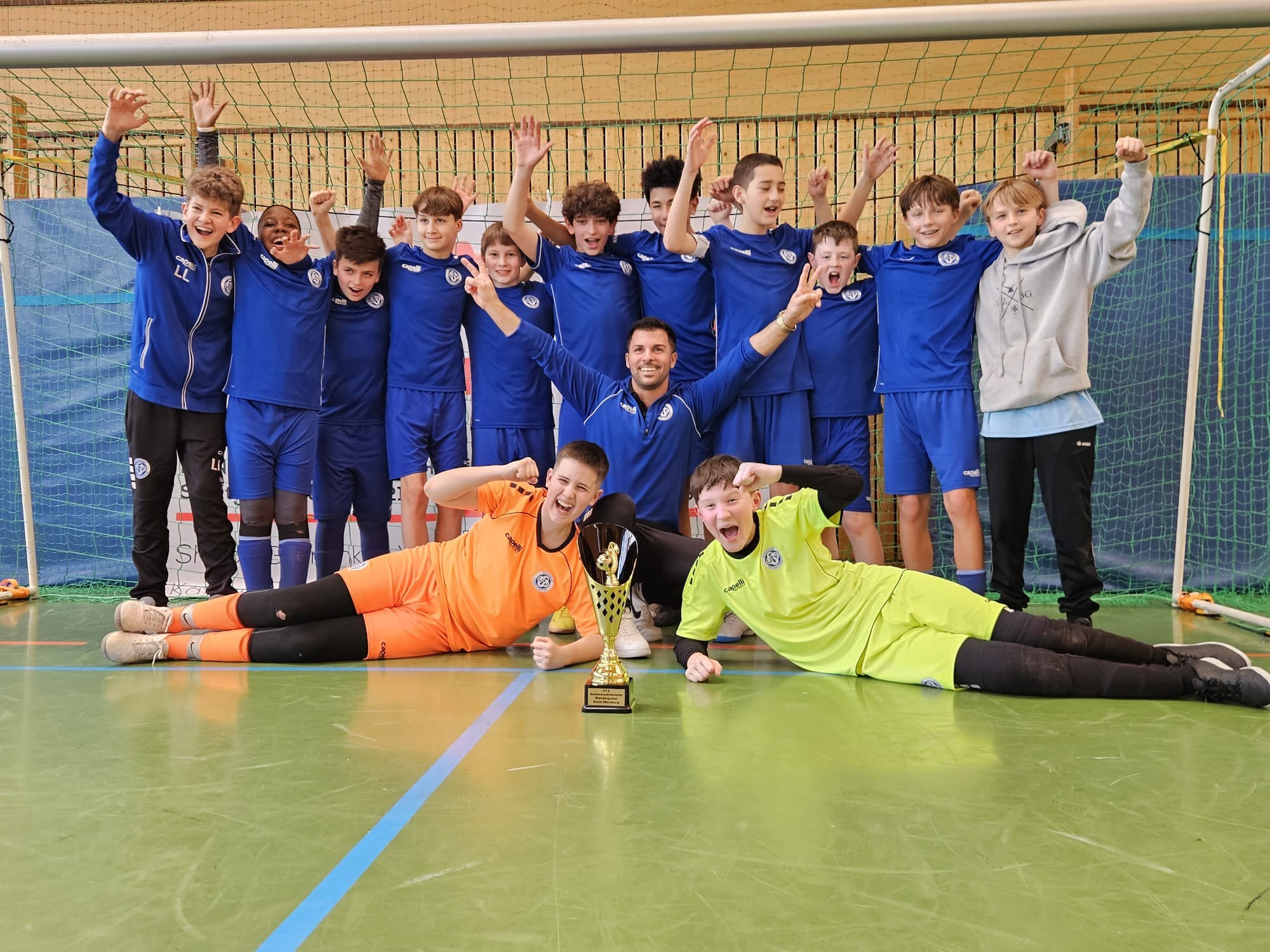 17. März 2025Am 23.02.2025 fand in der Heuchelhofhalle erneut die Stadtmeisterschaft der U13-Fußball-Junioren statt. Acht Mannschaften darunter Würzburger FV, Würzburger Kickers, SV Heidingsfeld, JFG Würzburg Nord, DJK Würzburg, TSV Lengfeld, ETSV Würzburg und TSV Rottenbauer konnten sich bei der Veranstaltung sportlich miteinander messen. Mit insgesamt nur zwei Gegentreffern in der Vorrunde standen am Ende des Turniertages die Würzburger Kickers als Gegner fest. In einem hochspannenden Finale gelang es unseren U13-Jungs, den Wanderpokal (wie schon 2024) mit einem 2 : 1 für sich zu entscheiden. Im Kader waren James Onye, Maximilian Buck, Jonas Keupp, Janis Kohl, Yaakoub Safta, Kersten Shahi, Marko Sicaja, Luca Ruft, Ferdinand Böhm und als Keeper Noa Tadic sowie Luke Fränkel.