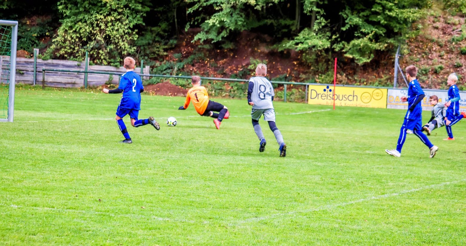 Die Gastgeber, welche körperlich unserer U13/2 überlegen waren, agierten von Beginn an mit langen Bällen und Abschlägen, um ihre großen und schnellen Stürmer einzusetzen. Die Blauen reagierten dagegen mit schnellem Kurzpassspiel und versuchten den Ball und Gegner laufen zu lassen. Gefährliche Situationen wurden aber durch unsere Defensivreihe um Marvin Höchel, Mika Gehret, Henri Dölling, Felix Baumann und Denis Desic im Tor souverän entschärft. In der zweiten Halbzeit wurde die Überlegenheit der jungen Blauen, welche durch unser Mittelfeld um Noah Schmitt und Raphael Keupp ständig angetrieben wurden, immer stärker. In der 38. Spielminute schnappte sich unsere agile Sturmspitze Silas Amend den Ball, tanzte vor dem Tor des Gegners drei Gegenspieler aus, behielt auch vor dem Torhüter die Nerven und versenkte den Ball eiskalt im Netz zum umjubelten 1:0 für den WFV.